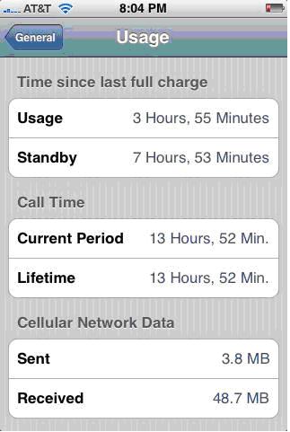 Sorry. My fault. I wasn't clear on the information provided. The usage info given was based off of the last full charge. I didn't do much 3G internet browsing on that particular charge.wifi data usage is NOT counted towards the data usage figures..