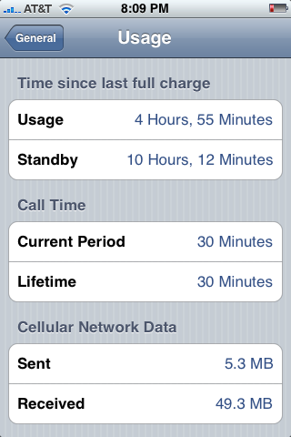 This first one is the total just before I plugged it into the charger and the second one is after I plugged it into the charger. I posted the second one because people were insiting that I had to have plugged it in once or twice since the last charge to keep the usage stats so high. You see that it indicates that the iPhone was plugged in since the last full charge. These words appear the second you plug it into the charge or usb port. Notice the first screen cap doesn't say it's been plugged in so it's gone 1 day 18 hours since it was last plugged in at all.