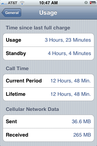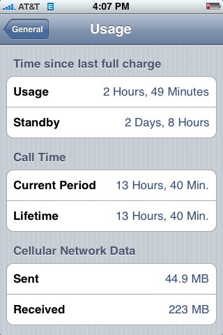 sounds like some 3g's out there like to randomly put numbers in some of these fields. may explain some of the out-of-this-world usage and stand by times. I will post mine tonight when its closer to being dead