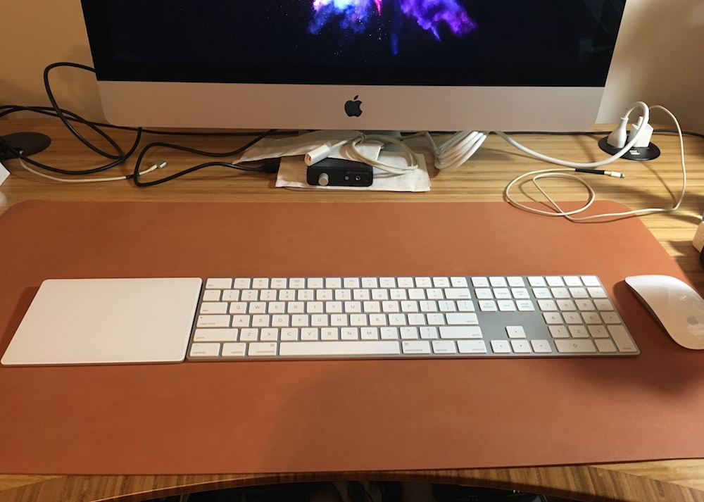 I use trackpad 2 with my left hand, keys in the middle, magic mouse 1 with my right hand as am ambidextrous. If I were strictly right handed, perhaps I could've just went with the compact key though, as numeric part does bump the trackpad/mouse further away on the right. Magic mouse 1 drains the fastest, followed by the trackpad 2, with numeric magic keys being the slowest. Even though I shut off trackpad 2 overnight, it has already lost 40% after a week while the keys which I never turned off only 10%. The magic mouse 1 loses like 10-15% per day.
