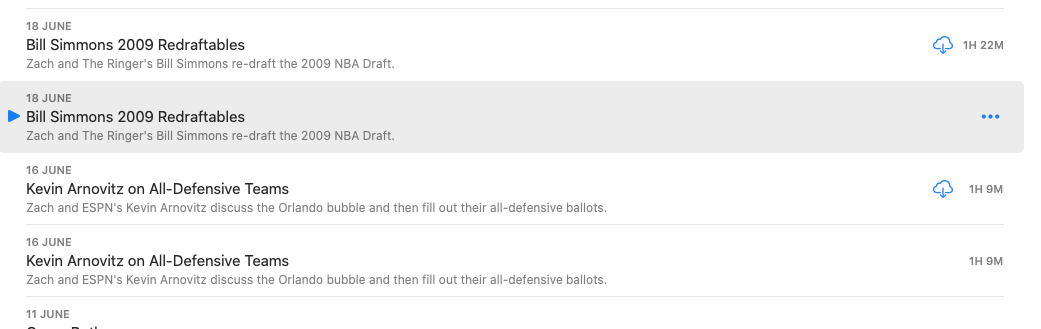 In the Apple Podcasts application on IOS Catalina, podcast episodes that are already downloaded to the My Episodes list show up as duplicates with the Cloud icon next to it - so I see two instances of the same episode.