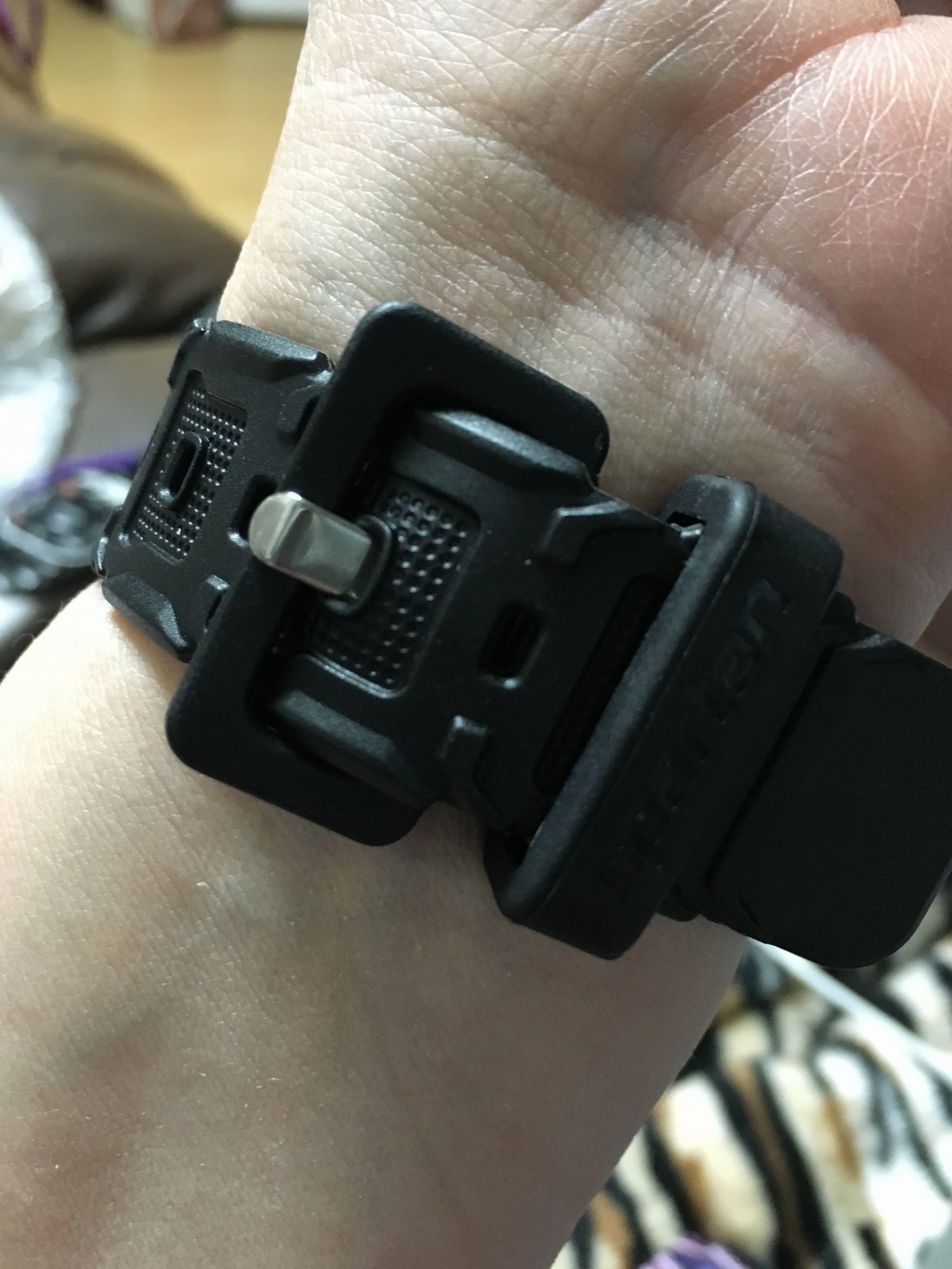 The band itself is nice. Thick TPU, which is actually pretty comfortable. But as you may be able to tell from the photo above, I have it almost to the last hole, and my wrist is by no means large. This (38mm) band would never fit someone with a larger than average wrist.