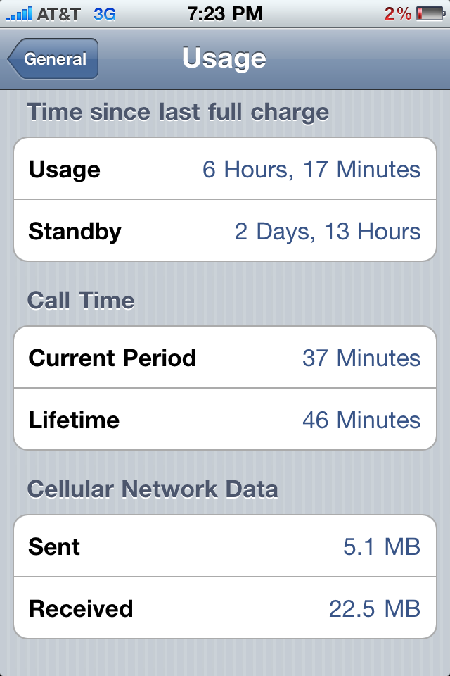 When I came back home on Monday I realized I hadn't charged my phone the whole time I was gone, and this is what my usage stats looked like