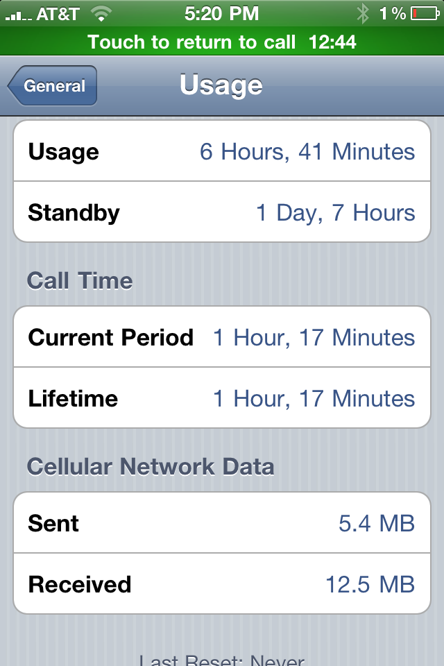 I am at a similar point on my phone.. so I thought I would compare. Most of my usage is Safari.. little facebook.. and Pandora (not long)