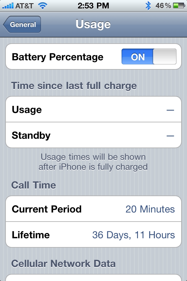 Any idea why My stats are blanked out???? it does say usage will be shown after iphone is fully charged, but i charged this puppy for almost 24 hours. I charged it while it was completely off and when i rebooted the battery was all the way up and showing 100%