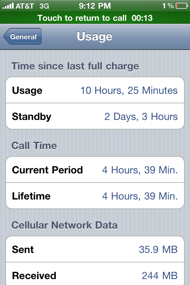The issue here is I have NOT used it for 59 minutes. Actually, I haven't used it at all. I pulled it off the charger yesterday, and haven't even unlocked it until right now when I checked the stats. So, where is it getting off saying I've used it for an hour? I do not have Push on, or notifications, or anything like that, and it died before I plugged it in so nothing should have been running.