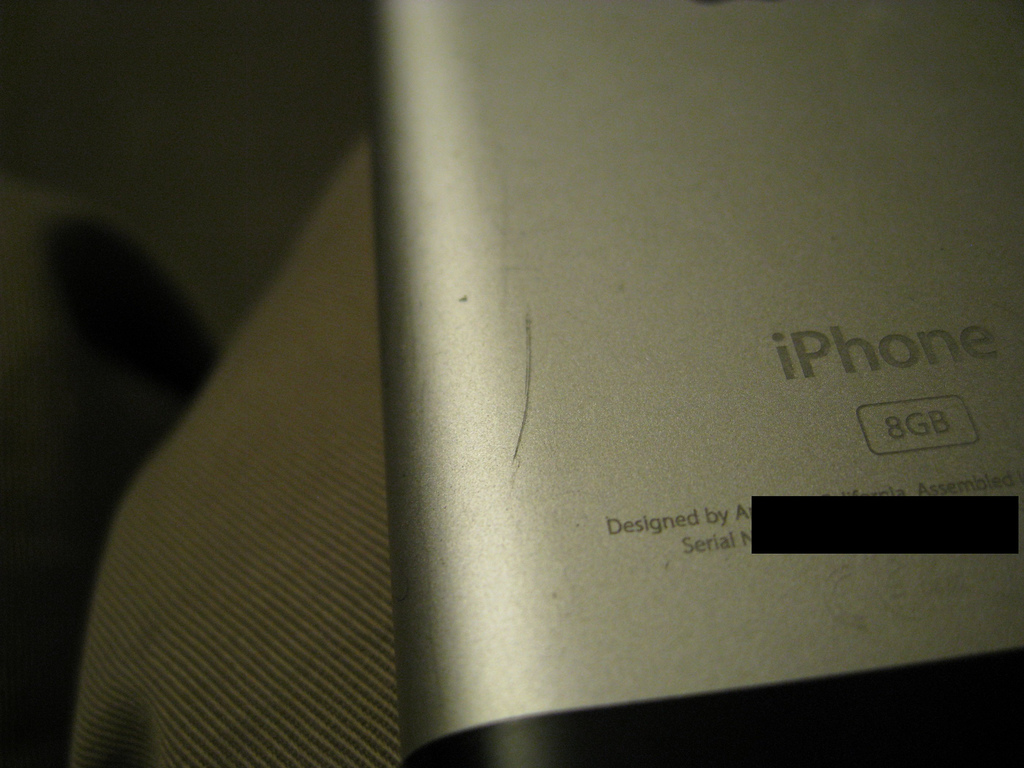 I will start. Below you will find my wife's iPhone scratched less than a week after it came out. We were never able to determine what caused the scratch but thankfully the Apple store let me return the phone for a restocking fee and get a new one. Very nice of them. It may have been because I was the first person who ever came in with this problem.