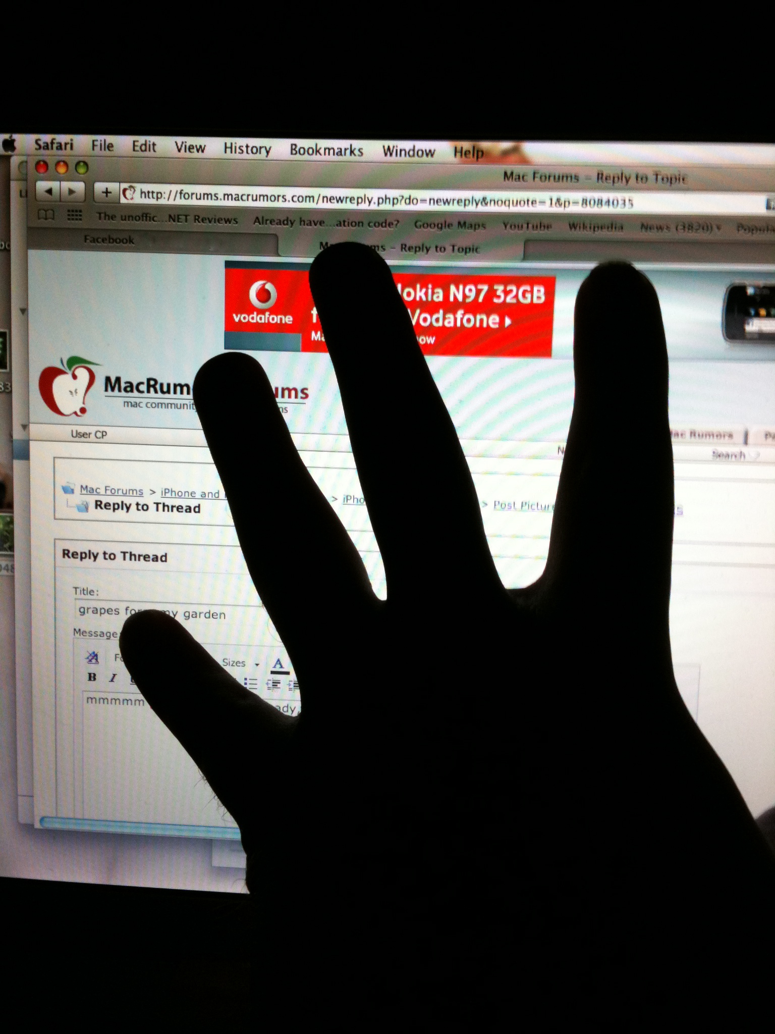 Wirelessly posted (Mozilla/5.0 (iPhone; U; CPU iPhone OS 3_0 like Mac OS X; en-us) AppleWebKit/528.18 (KHTML, like Gecko) Version/4.0 Mobile/7A341 Safari/528.16)