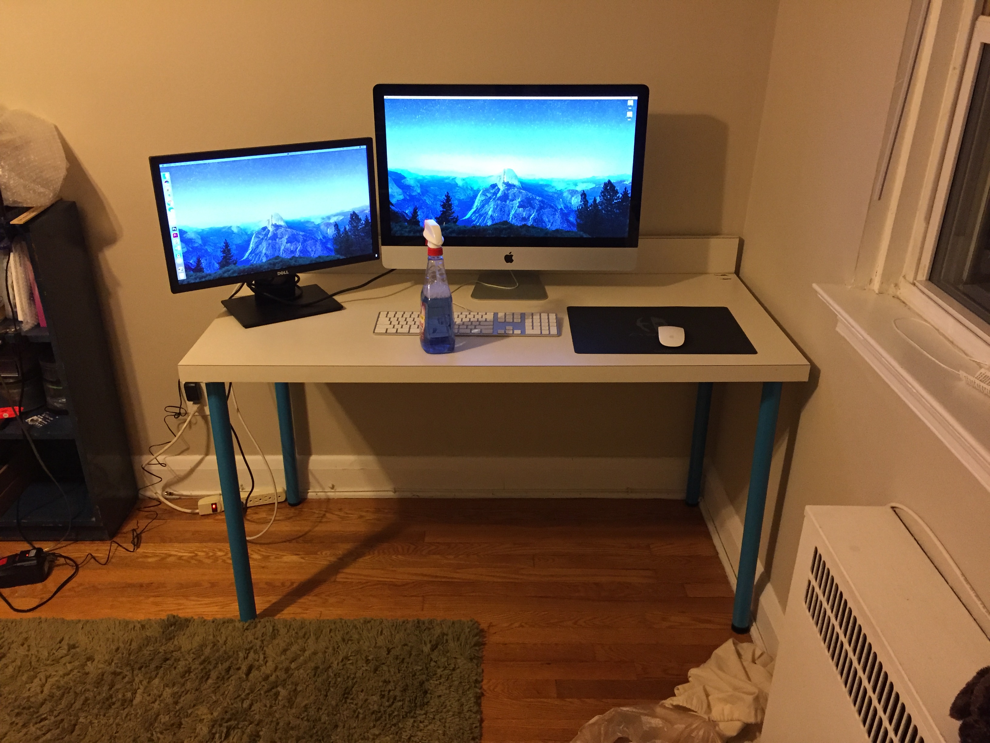 I am planning to build my own desk too but with some shelves too.Built this guy last night. Old countertop from when my parents redid their kitchen and a few IKEA legs. 20 pilot holes and some a handful of screw later...