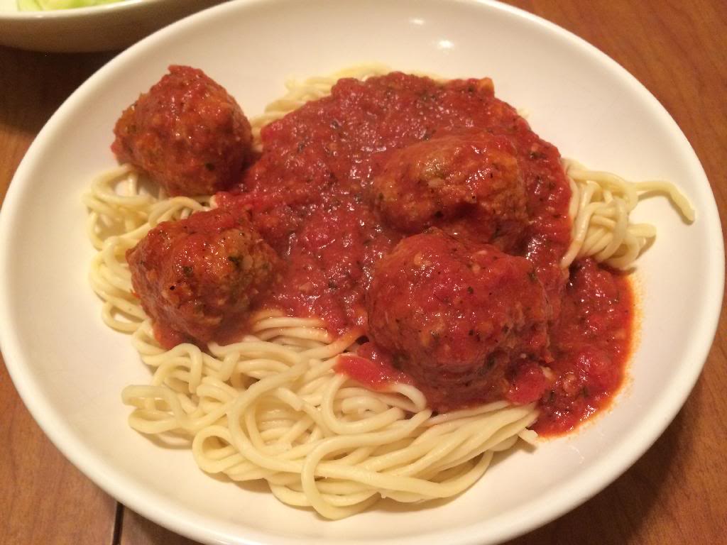First attempt at a from scratch slow simmer spaghetti sauce with beef/pork/veal homemade meatballs and from scratch noodles. Very successful.