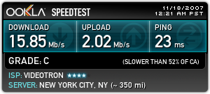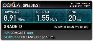 My University of Rochester dorm connection (wired - wireless is dog slow).