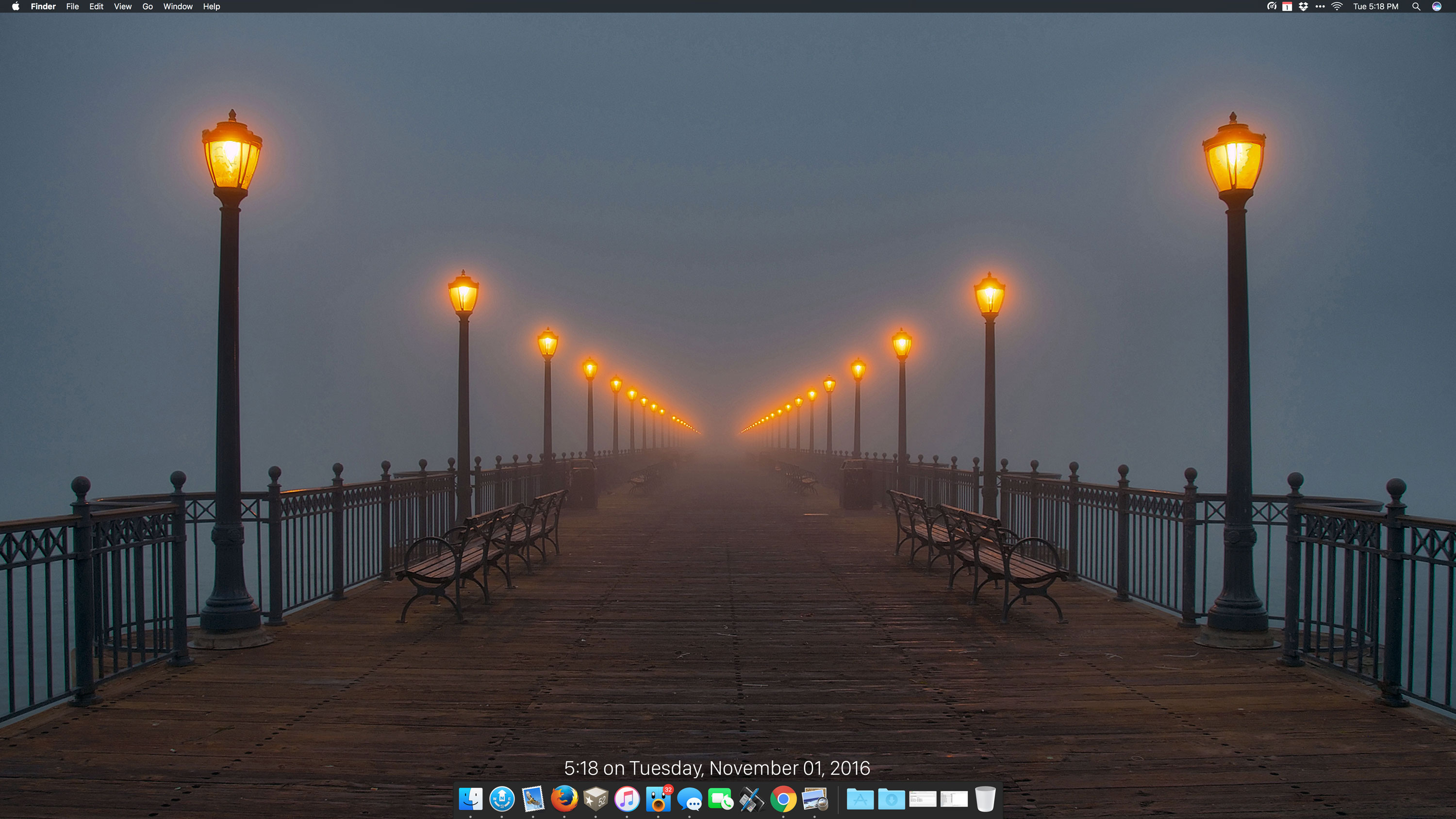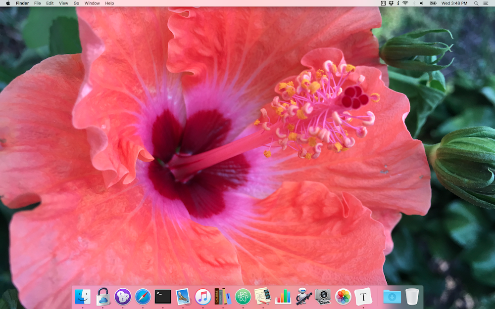 My dock itself I'm taking a new approach as well. Since I use Alfred for basically every command now, the dock only has three items by default: Finder, Launchpad, and Trash. Anything else that shows up in the dock is a running application.