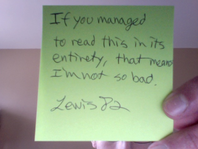 I won't post a pic of my terrible hand writing - it looks neat from afar because the lines are straight and the slope of the letters is very consistent - that is until you try to read it. Even I have a hard time with it if it's been too long.
