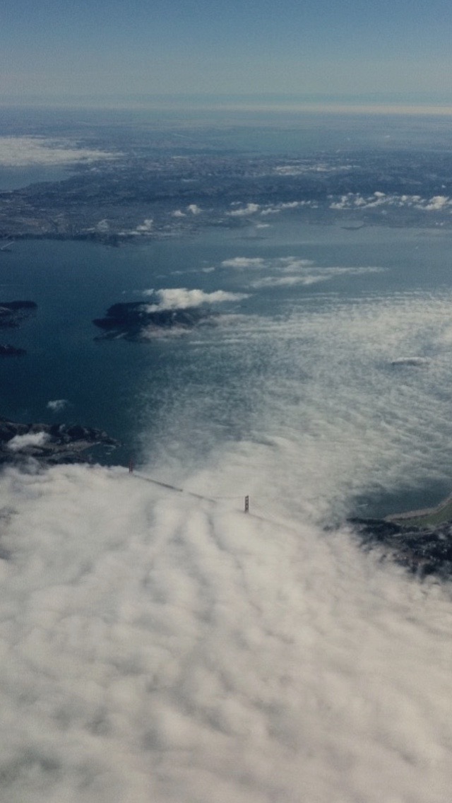 I alternate between these two. Both of which I took. The first is the Golden Gate Bridge (San Fran) from a few thousand feet up. Could only grab a quick pick with my iPhone (4), I really which I had been able to get my DSLR out to take a better pic, but we were coming in to land.
