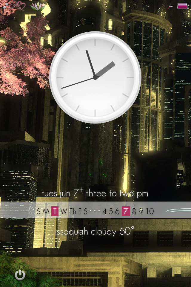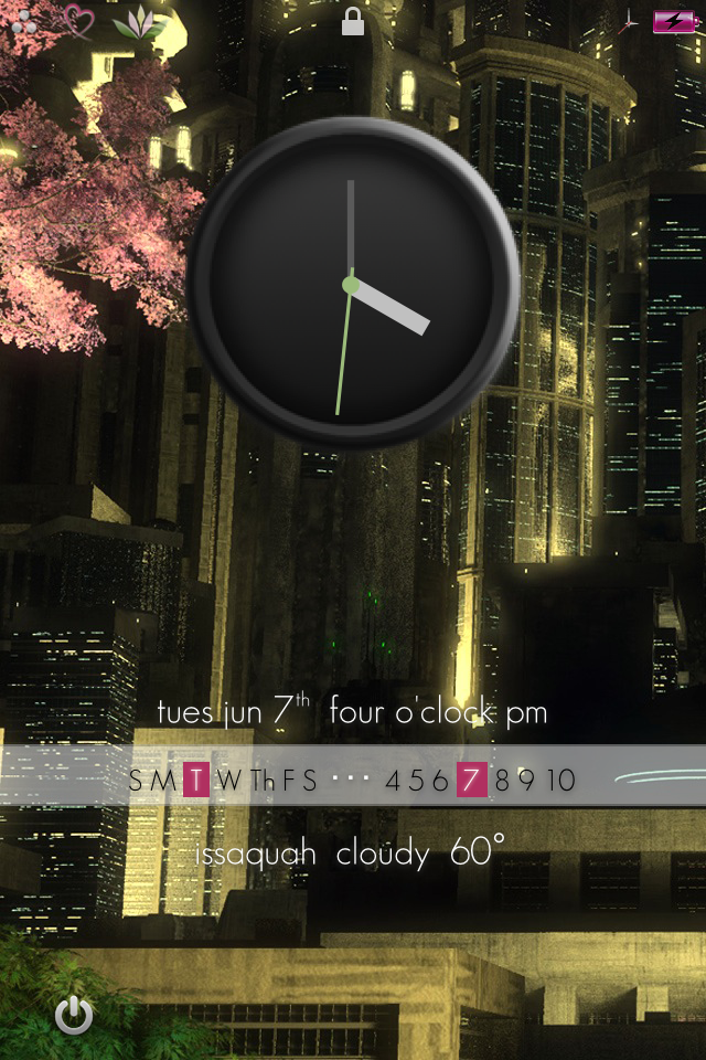 Here's the result. I still want to put a little more separation, just a few spaces, between the top date/time and the city/weather below the datebar, but otherwise I'm really liking this one. Might also like a version that doesn't have the clock image, just the simplicity of the stuff below.