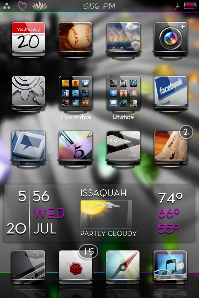 Someone posted the new iFlat Evo theme a couple of days ago and I just had to grab it. It's available through ThemeIt and they have a SD and HD version. I did encounter some problems with the initial theme, though. Specifically, the Maps and Camera icons wouldn't theme. I checked the bundles and icon names and everything was correct, but in the end I solved it by using the "Icons" method to get them themed.