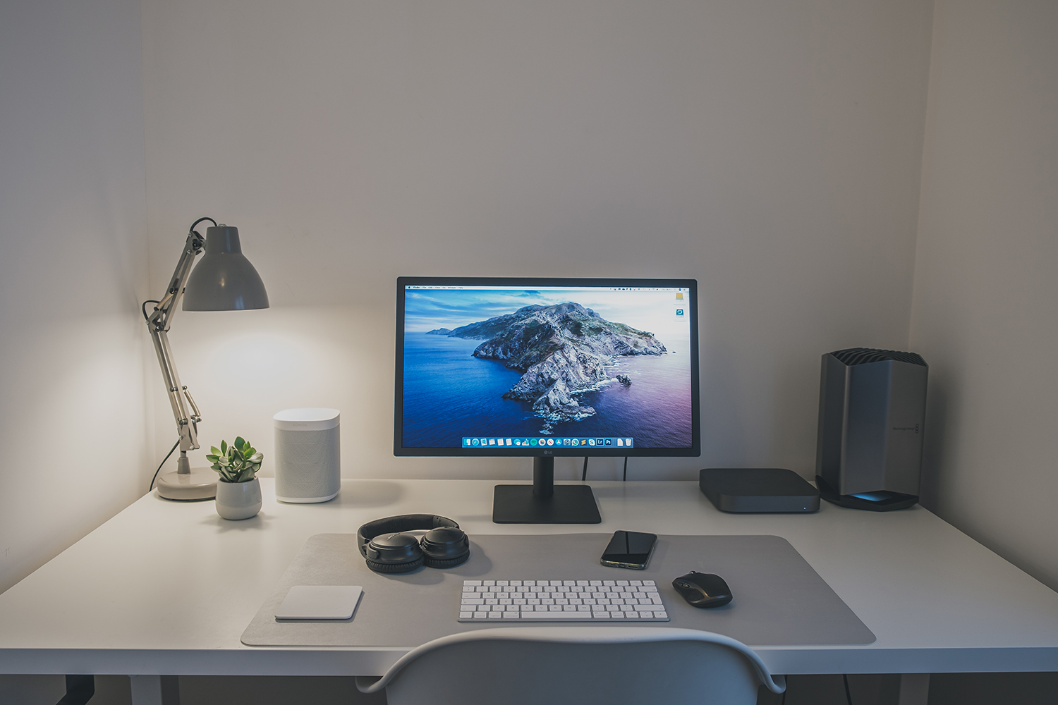 Long time lurker, so hello and time to post my setup. I have a refurb 2018 mini i7/64GB/1TB with a Dell U2718Q monitor (scaled 2x), 1TB G-Drive, 1TB Lacie Rugged, gen2 Airport Extreme for Time Machine only, iPad Mini 5 on a Rain mStand (in a Zagg Rugged Book--love this case), Bose speaker, external Samsung dvd drive, and last but not least my beloved Roland FP-10. My primary use is for composition in Logic Pro. I can wheel the keyboard away as needed. I also use a Blue Snowball ice usb mic for some projects. My network stuff is across the room.
