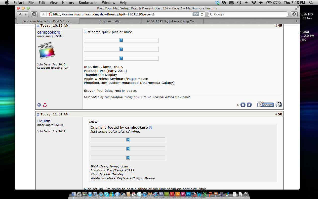 Would someone have an idea for a nice picture/poster above my setup? (Page 2). There is a clear space on the left i'd like to fill with something.. maybe something "apple-ish" :D