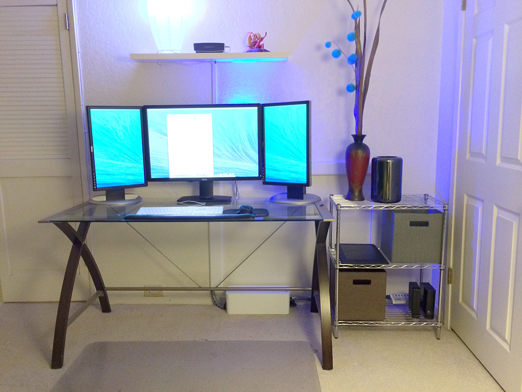 Love the blue puff ballsJust switched from a "Early 2013" Retina MacBook Pro to a "Late 2013" New Mac Pro. That new Mac Pro looks so nice I had to revamp my desk.