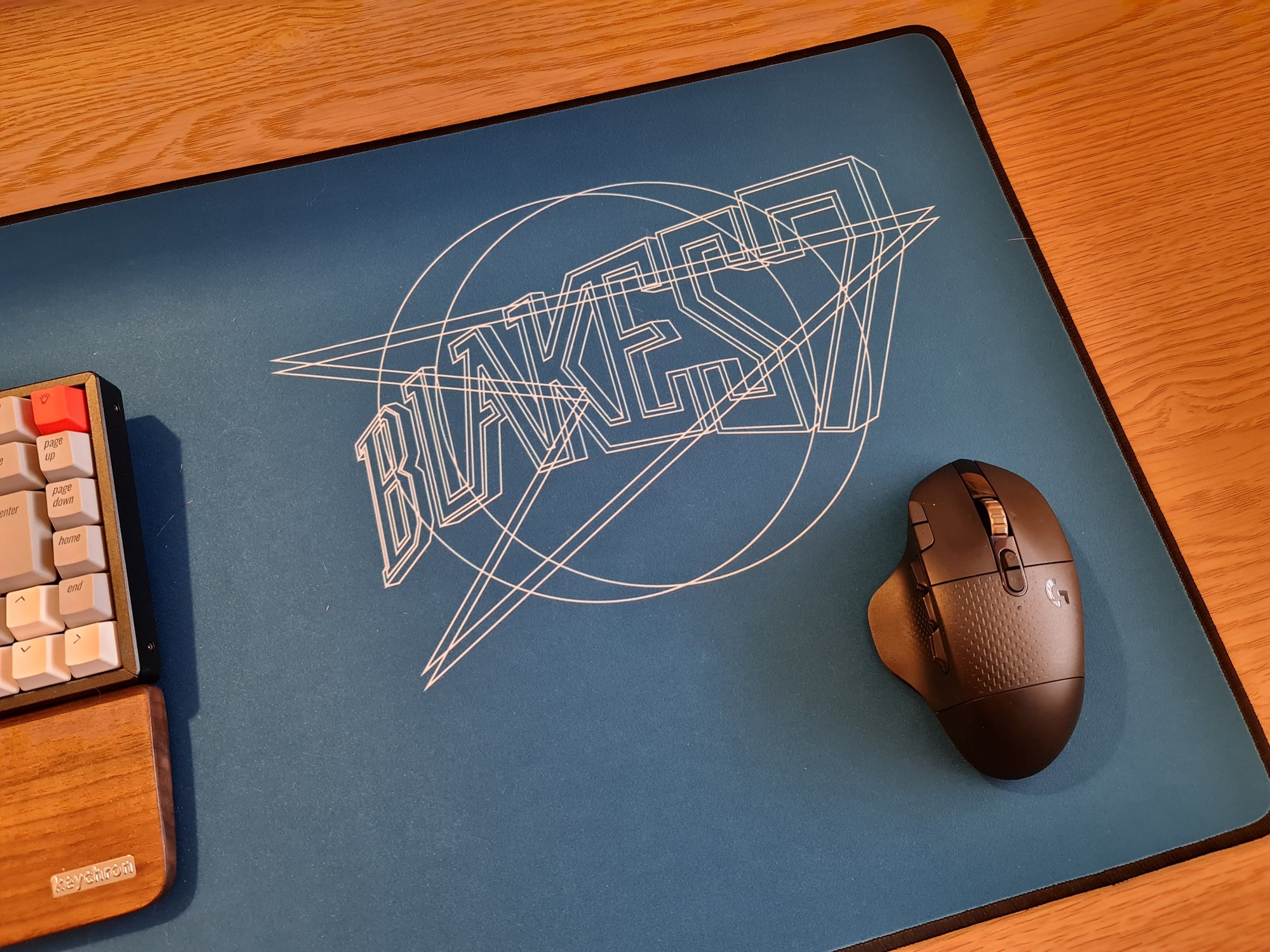 Keyboard is a bluetooth mechanical Keychron K2 with Gateron brown switches and Keychron's retro PBT Apple keycaps (MUCH better than the cheap and horrible ABS factory keycaps), with Keychron's own wooden palm rest (the keyboard is TALL). The mouse is a Logitech G604, connected to the MBA via a USB receiver.
