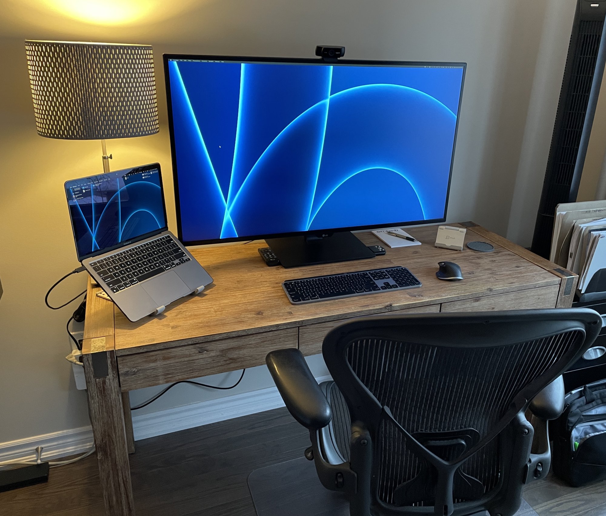 - My work laptop (an HP, not listing specs.) Not on the desk at the moment, it would be where the MacBook Pro is when using it. It's actually the reason I have the 5 Gbps Ethernet adapter.