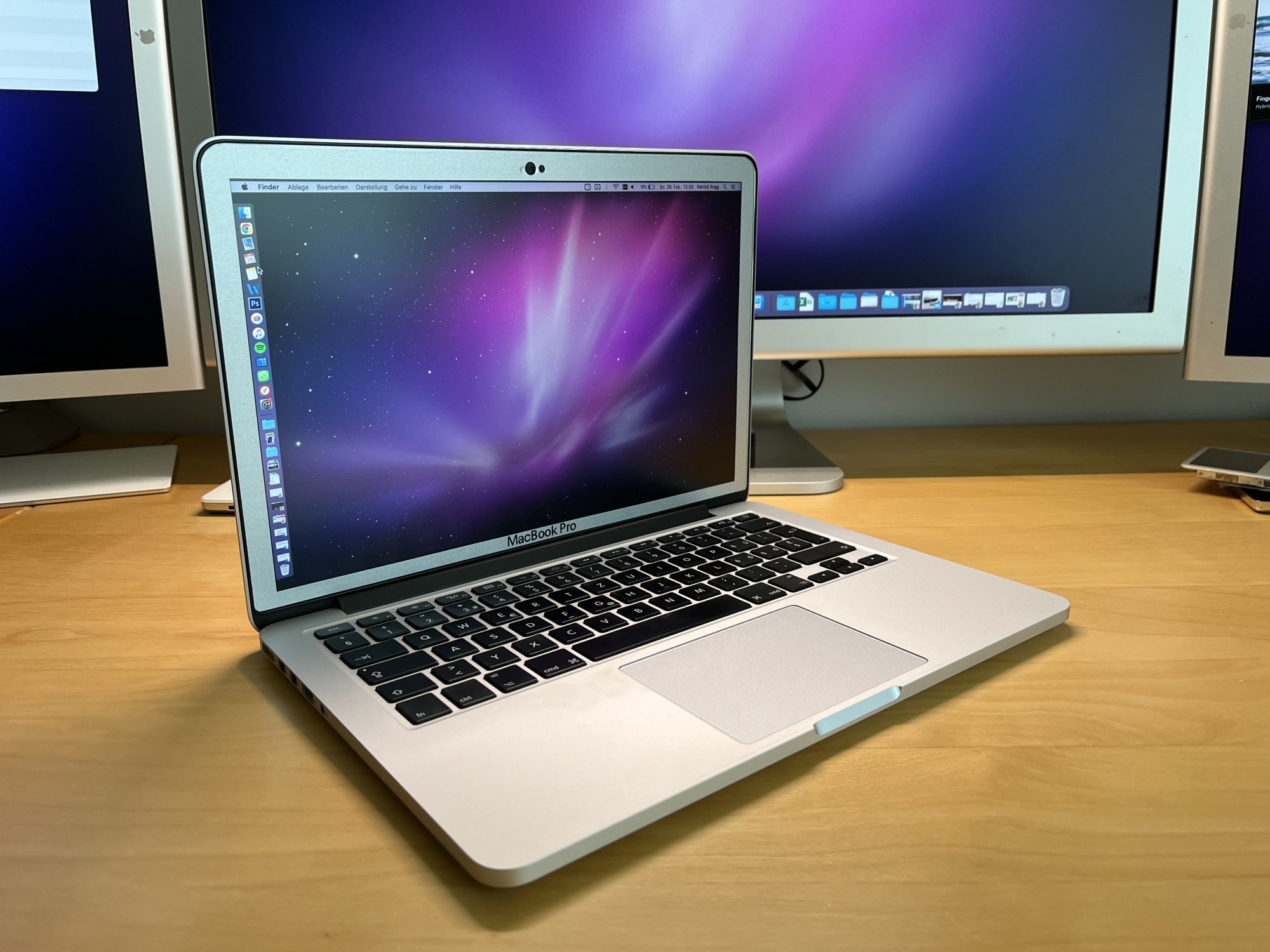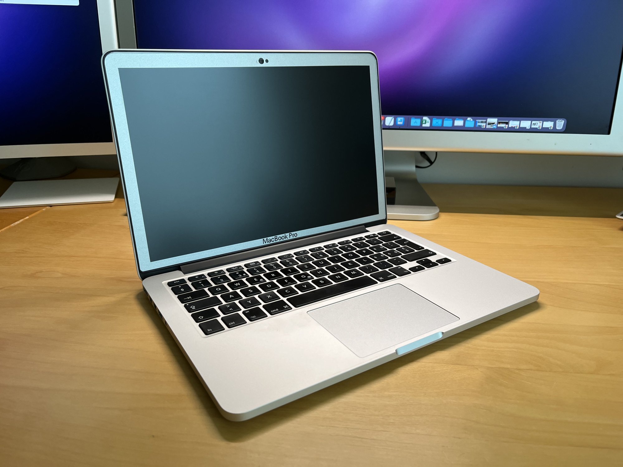 Not really a desk setup shown but I did a little modification to my beloved 13" MacBook Pro retina (late 2013). The anti glare coating was damaged so I decided to rub everything off and put on a matte screen protection. As I always loved the older 15"/17" Unibody MacBook Pros with their high resolution anti glare screen and silver bezel I bought off Etsy a silver bezel made from vinyl foil. I did documented my whole process in this thread if someone wants to know further details.