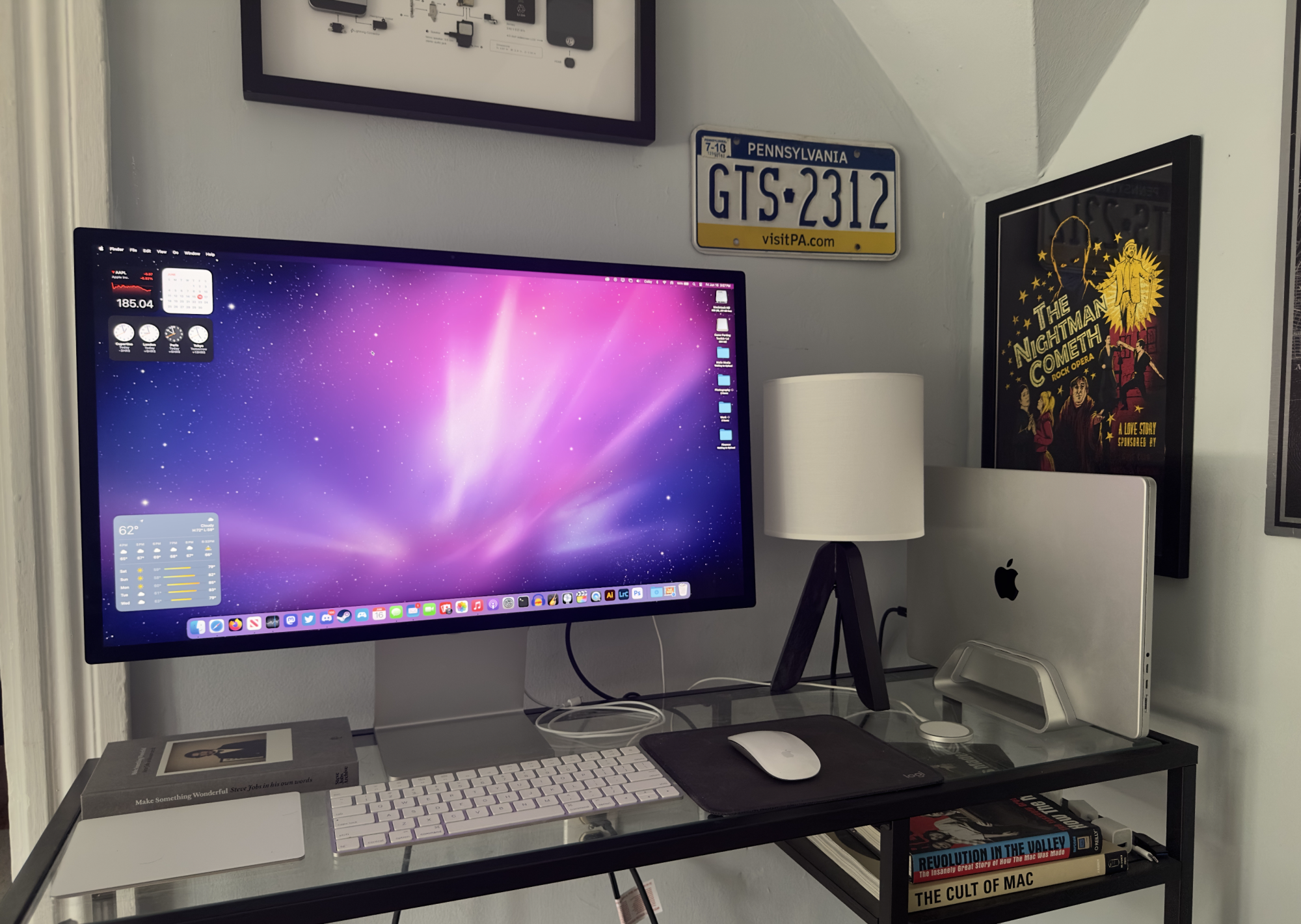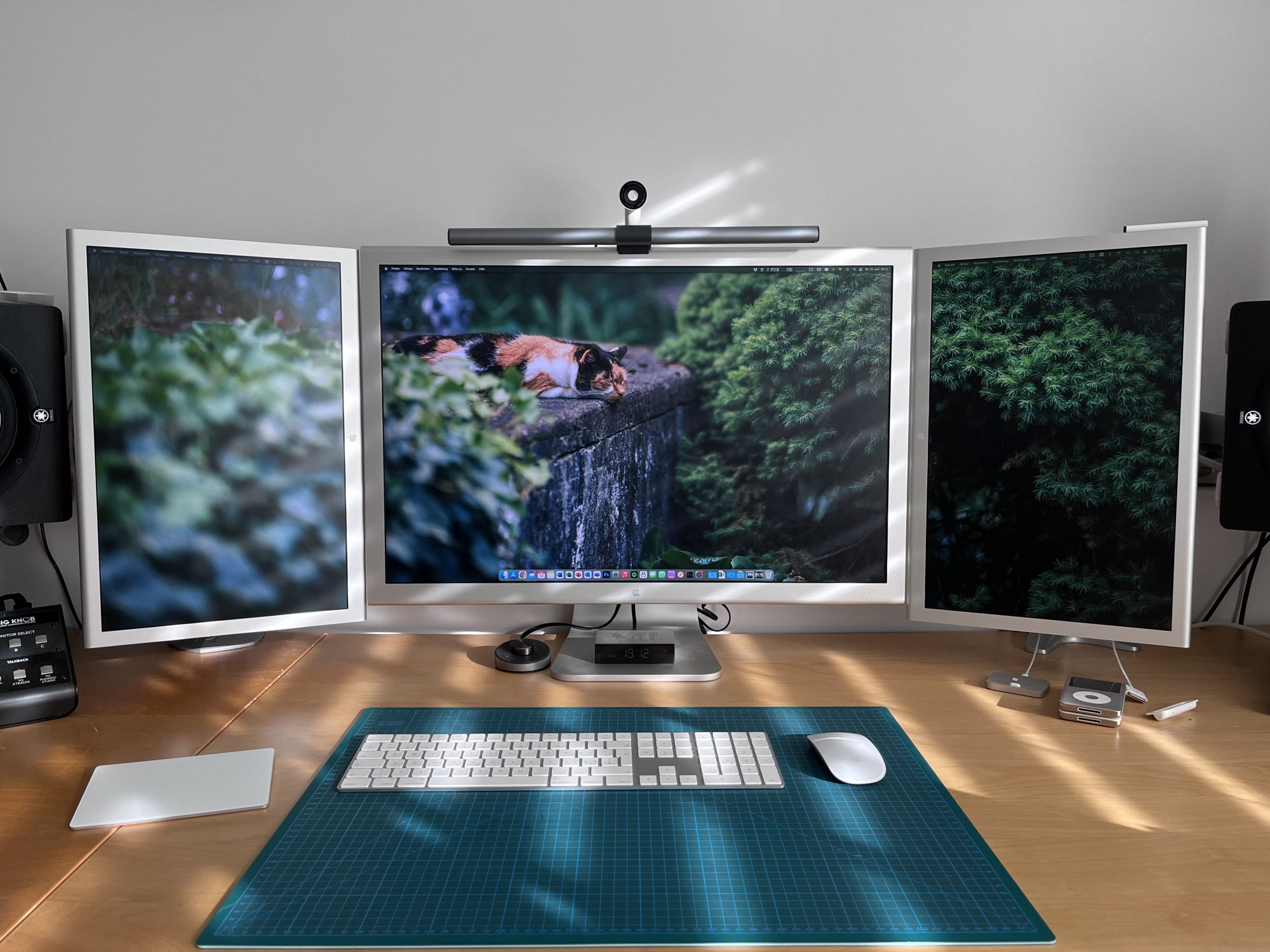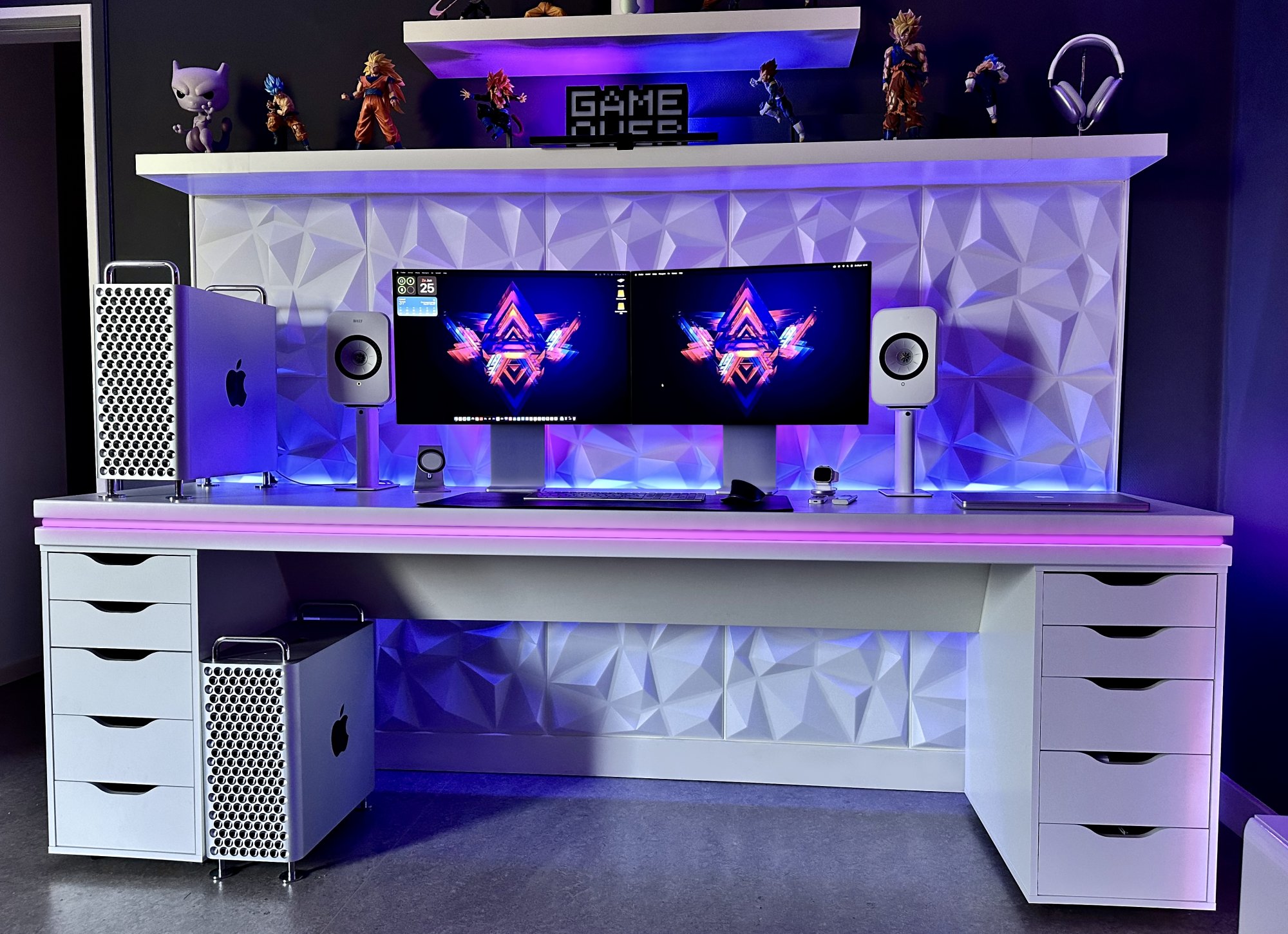 It's been forever and a half since I last visited! There's technically 3 macs in this picture, but 2 are vaguely recognizable grey rectangles on the far right. The Mac Pro runs my side screens and either my PC or one of the Mac laptops drives the middle screen. I've been a bit too busy to do a nice staged picture, but I rather like this one! In fact, I upgraded that PC to have a 7800x3d sometime after taking this. The old 9700k hardware became part of my sim racing machine. :) The guitar is.. not there for show, I just keep it handy to remind myself to practice it nightly. I always wanted to learn to play music, and it's been a lot of fun!