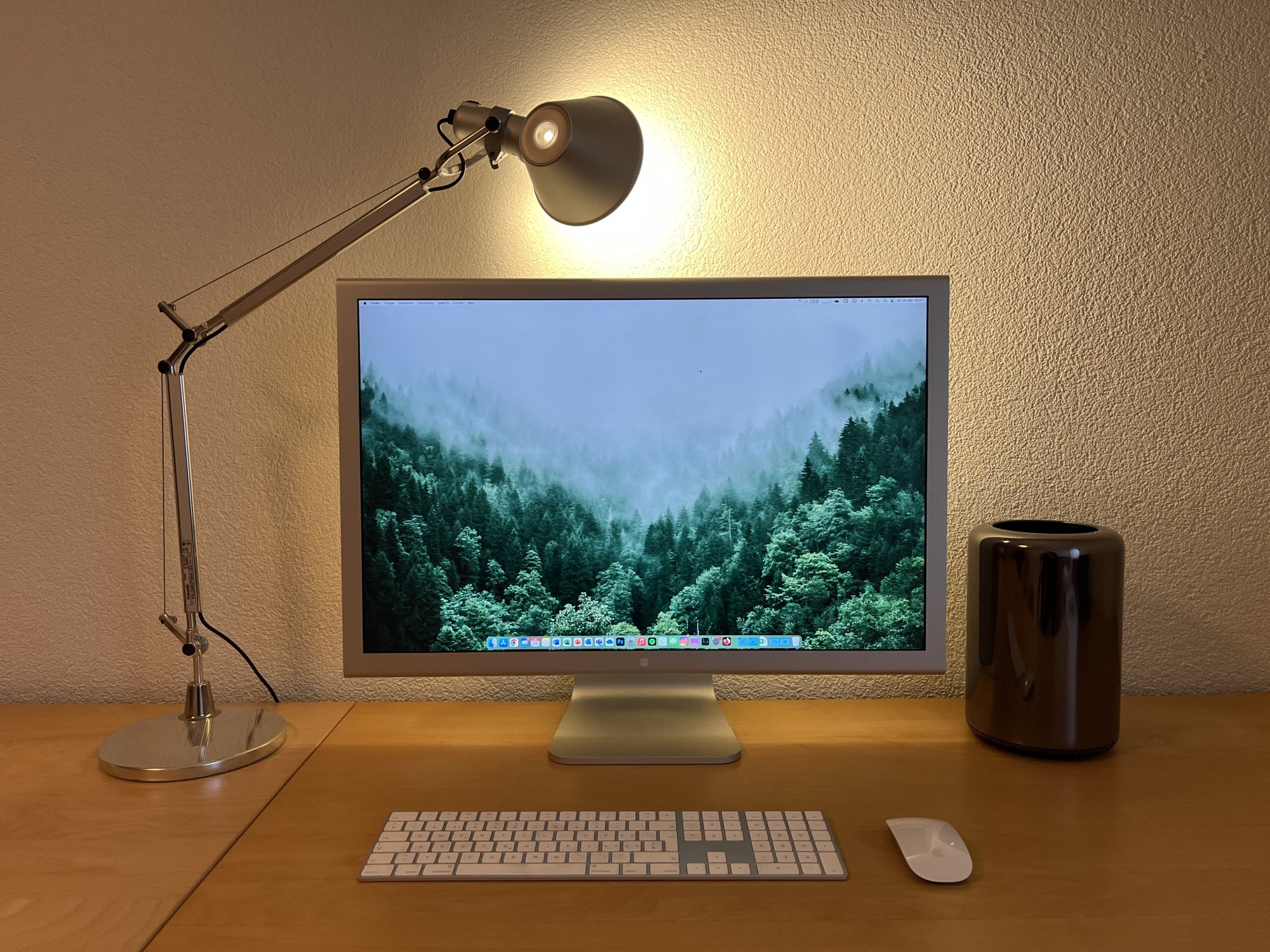 As I'm moving out in the next few days I had to reduce my setup to a bare minimum and packed everything in boxes. Somehow I like how simple and minimalistic it looks. But for sure I miss the additional display space I had on both sides with the rotated 20" ACD's. Will figure out how my setup will look in my new home.