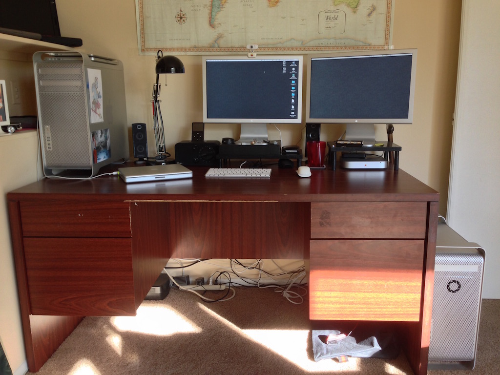 There are a couple of shelves that hold my iBooks and PowerBook G4s underneath. But yeah, that's my Mac setup.