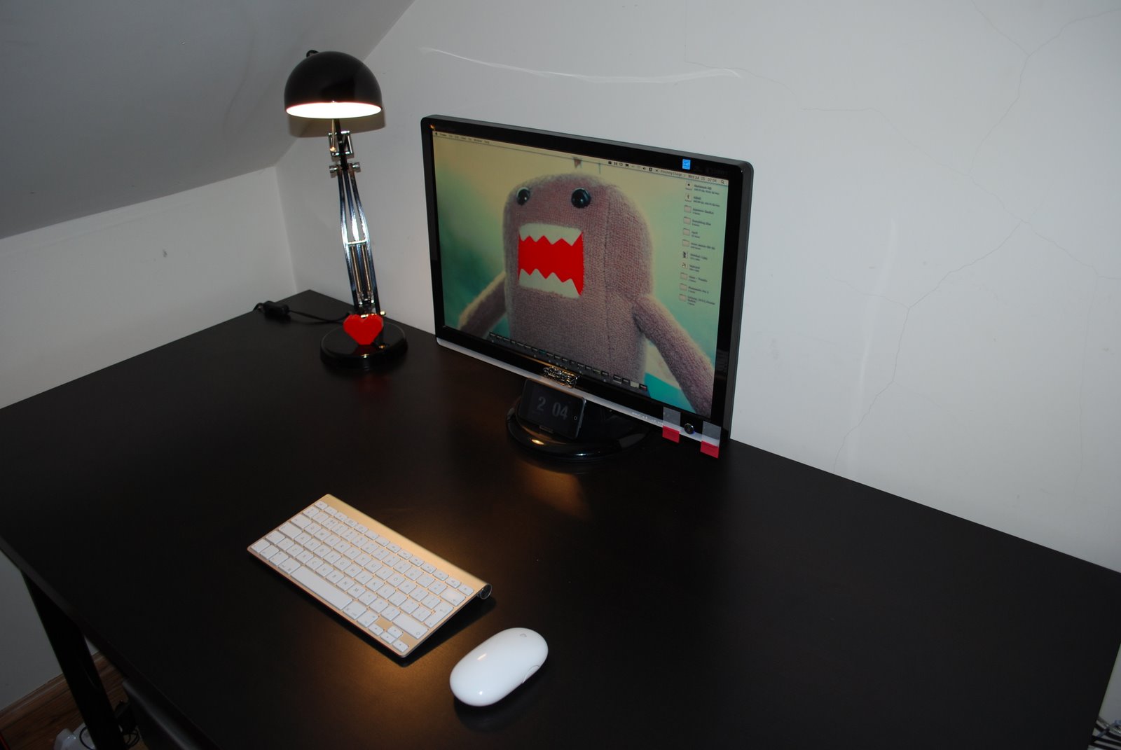 Almost everything from IKEA. Huge IKEA table, good for uni work. Side table where my Macbook Late 2008 sits on along with all the gizmos, etc. Out of my sight from where I sit so it gives the sense that its not even there.