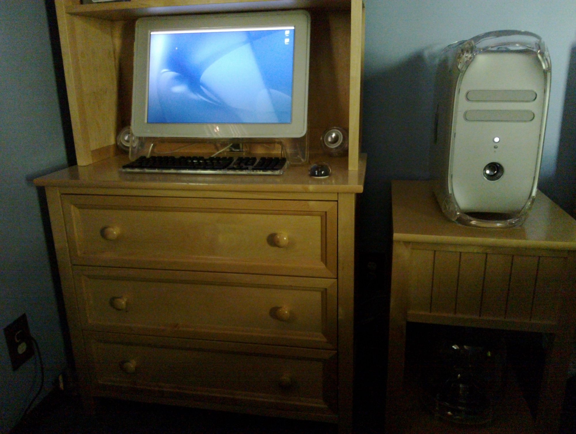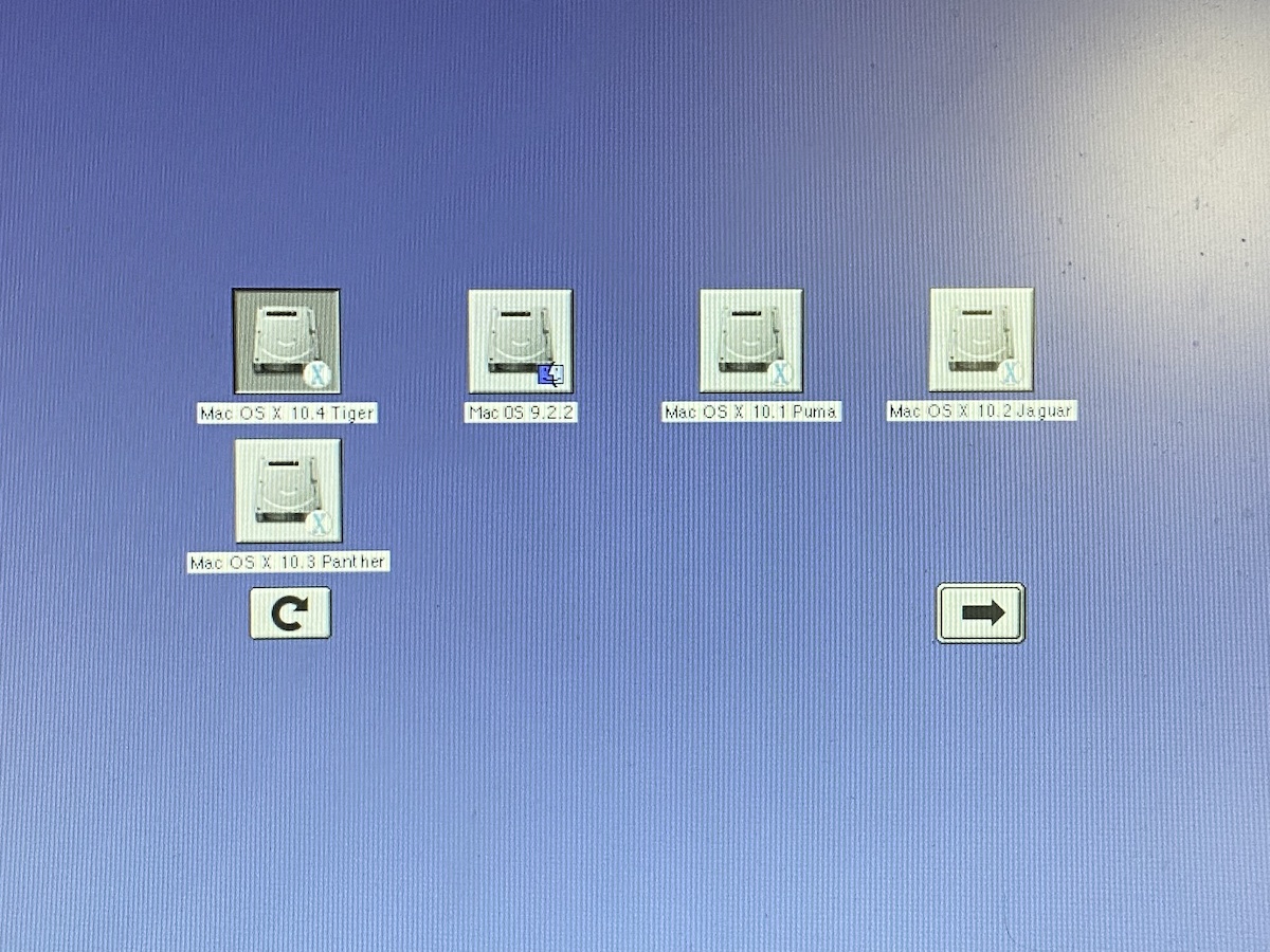 After some research on the internet and checking the second hand market, I ended up with a Quicksilver 2002 model with 1.25 GB of RAM and 2x 1Ghz processors. It had a defective HDD and I bought it for 47 € (original price was $2.999,- when released in 2002). Since I'm not good at scrapping stuff that is still functional, I was able to put in a 250 GB HDD and set up the machine as a multiboot system with 9.2.2, 10.1.5, 10.2.8, 10.3.9 and 10.4.11 as you can see on the photo.