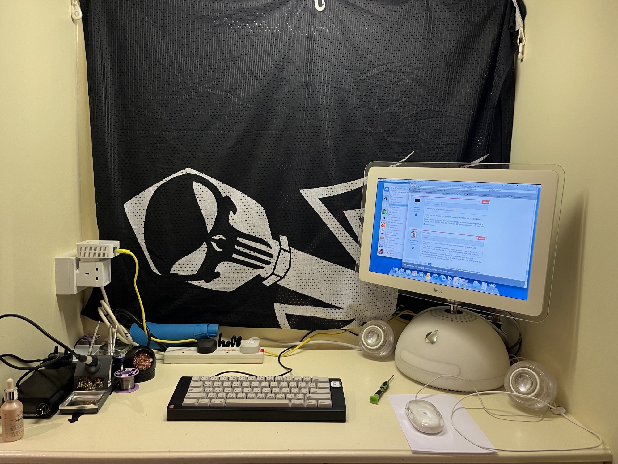 Just moved house and this is the second ppc machine I've got a good setup for. 1.25GHz 17" iMac G4, upgraded RAM to max, repasted, and set up in my soldering corner. Excuse the awful backdrop, there are mirrors behind it and I don't wanna see myself gawping while I solder haha
