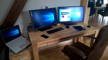 Currently in transition. New desk, new rig about halfway done. Still waiting on a GPU, some new speakers, a nice set of headphones, and a desktop mic.