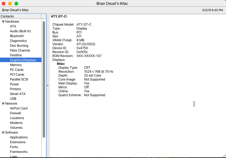 Not to be discouraged by a few failed attempts, I systematically went through each iteration of Mac OS X updates from 10.4.11 backwards to find a working driver for the ATI Rage LT Pro.