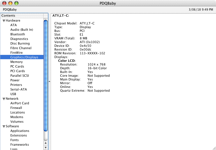 We now have full 2D acceleration in Tiger 10.4.11 on the PDQ! Setting bit depth to "Thousands" results in the best performance. Disabling shadows makes a massive improvement in redraw (I'm using Shadowless, but ShadowKiller will do the same).