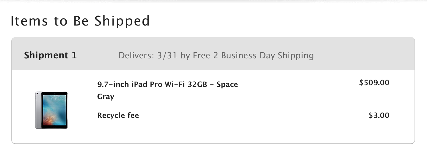 Lucky man, I'm sure if I had stuck with the Wifi only model as I originally intended(Only way I have ever bought an iPad) I would have gotten my order delivered today.I just want to say thanks to the OP for starting this thread. I had already planned on getting mine from target using my redcard in a tax free state but this thread alerted me to the extra 5% off coupon. I saved $73 with no extra effort. (And this iPad Pro screen is amazing!) Thanks, OP!
