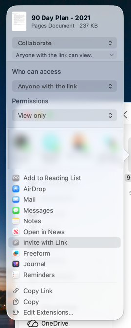- This then hen it gives me the oppornuity to "invite" other to collaborate by link.