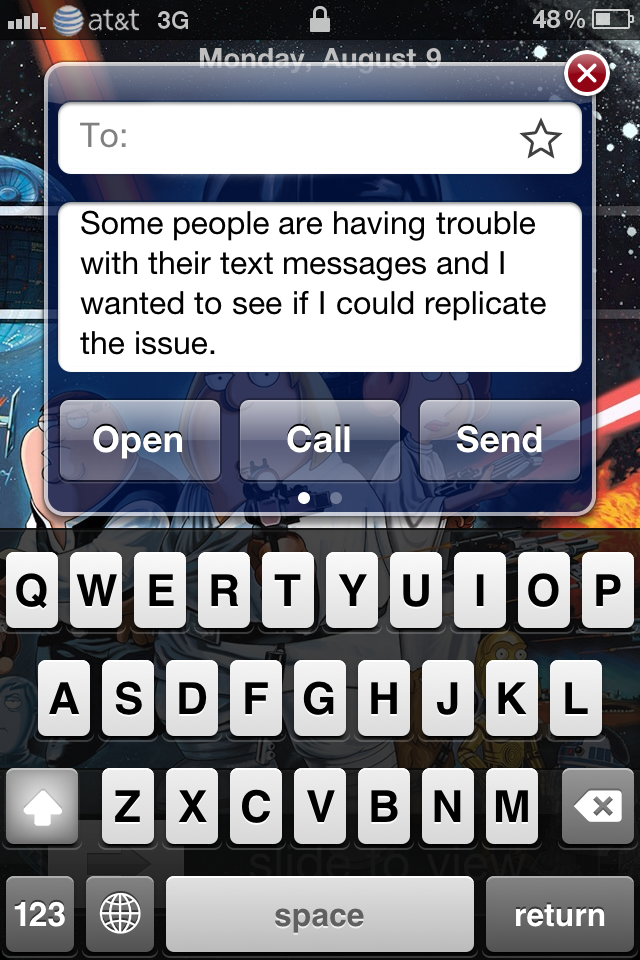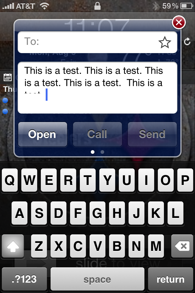 I just installed BiteSMS on my iphone 4 to try it out. I noticed that in both quick compose and quick reply (or whatever they're called), my messages are being cut off when I type them. As I'm typing my new message or my reply, the first two lines show up fine; however, when I get to the 3rd line the letters are cut off and I can only see the very top of them. In other words, it's like it's not scrolling correctly or something. By the time I get to the 4th line of my message, the letters don't appear at all. Anyone else noticing this? I'm having the same problem with the QC and QR functions in irealsms so it must be something else I have installed that's causing the problem. Can't figure out what the heck it is though.