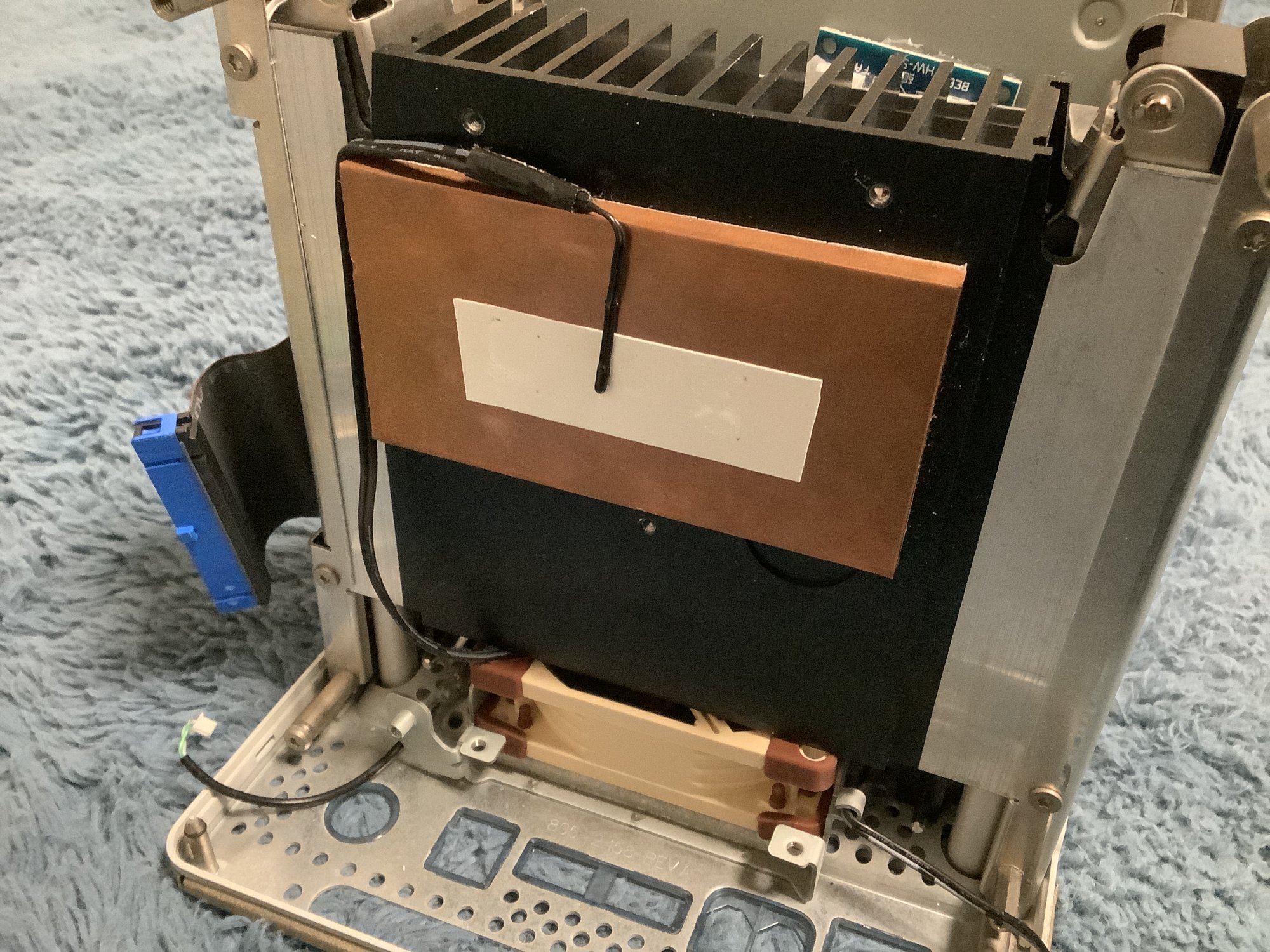 I got 1.5 Gigs of RAM, the CD/DVD eject mechanism repaired, new rubbers for the speakers as the old ones were trash, a 128 Gigabyte SSD with 3D-printed housing so it doesn't wobble around, new thermal paste, two USB splitter cables for more USB sticks (USB 1.1 is still a pain, I can't access my iPod shuffle "G4"