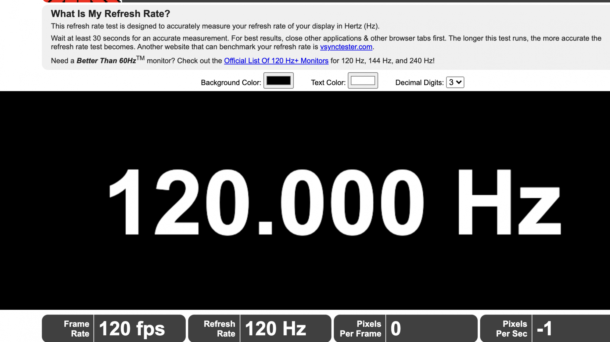 The TestUFO developer already said this is broken when it comes to Safari and that was years ago on the MacRumors forum so I wouldn't trust that test. My IPP shows the same 60hz on that test as well and IPP have been out for years.