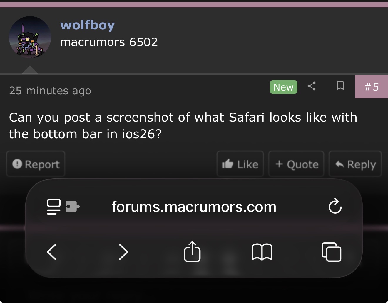 Can you post a screenshot of what Safari looks like with the bottom bar in ios26?