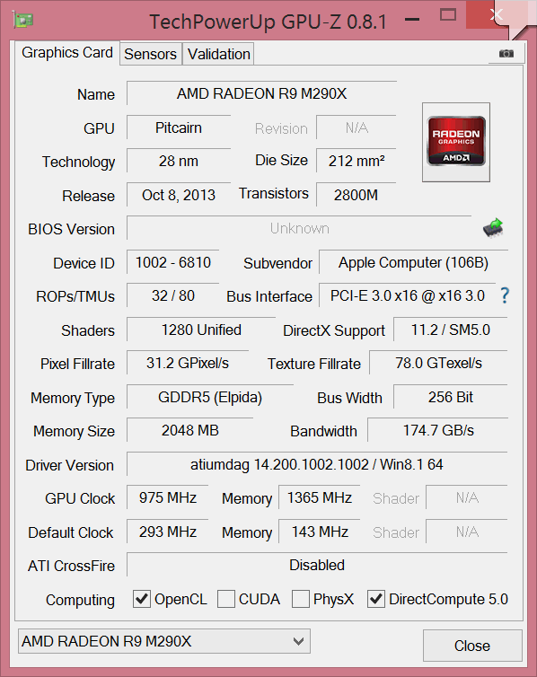 However, I checked both cpu-z and gpu-z and they both display a 975Mhz clock and even a higher memory clock 1365Mhz on M290X vs 1200 on 7870.