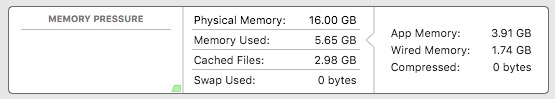 So far I have established that at a typical time when I am working (Safari with twelve tabs open, one VMWare Horizon session, Microsoft Teams, Microsoft Outlook, Apple Mail, Apple Music) I get the following memory stats from iSTAT: