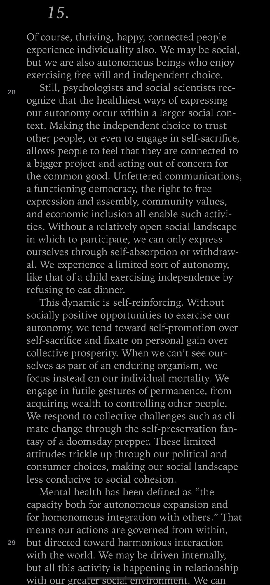 Reading on iPhone: I've read 2 books on my iPhone so far. I read with a black background and brightness way down - I find this helps reduce eye strain but holding the phone for >1 hour gets a little tiring. I prefer portrait mode but the only way I can read comfortably in Apple Books is landscape mode (due to screen utilization).