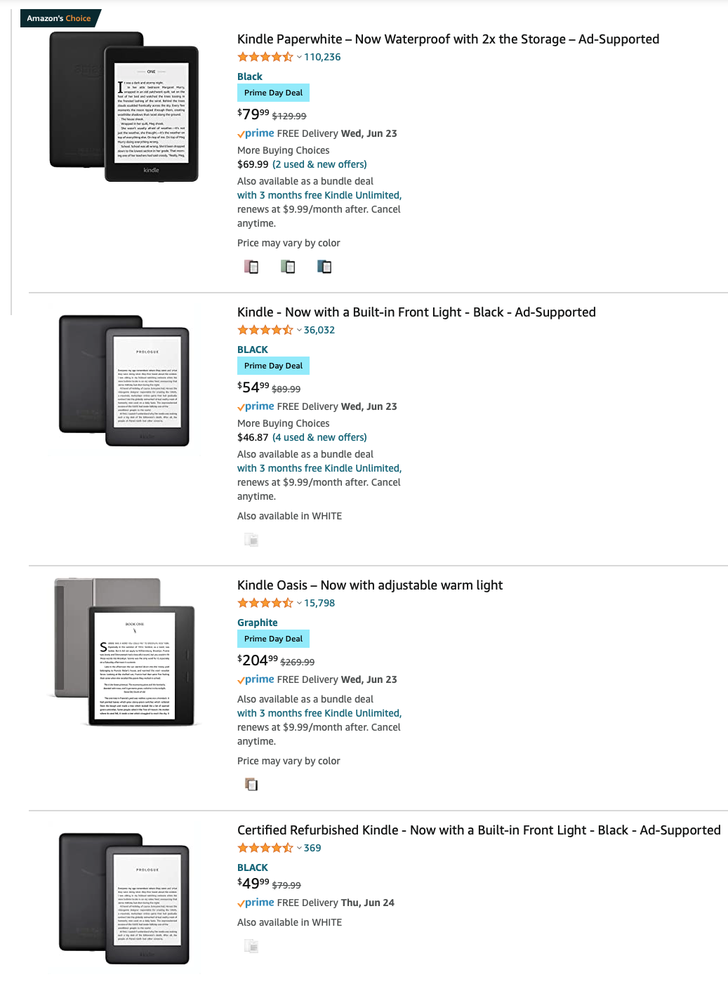 Thoughts on Kindle: Last time I used a Kindle was many years ago (right when the touch screen kindles came out) - text fuzzy, slow, battery life not terribly great but I read a lot. I haven't used the recent 300 ppi paperwhite - I'm very tempted to get one ($119) and Kindle books are usually cheaper but not a big Amazon fan. Kindle Unlimited also looks attractive.