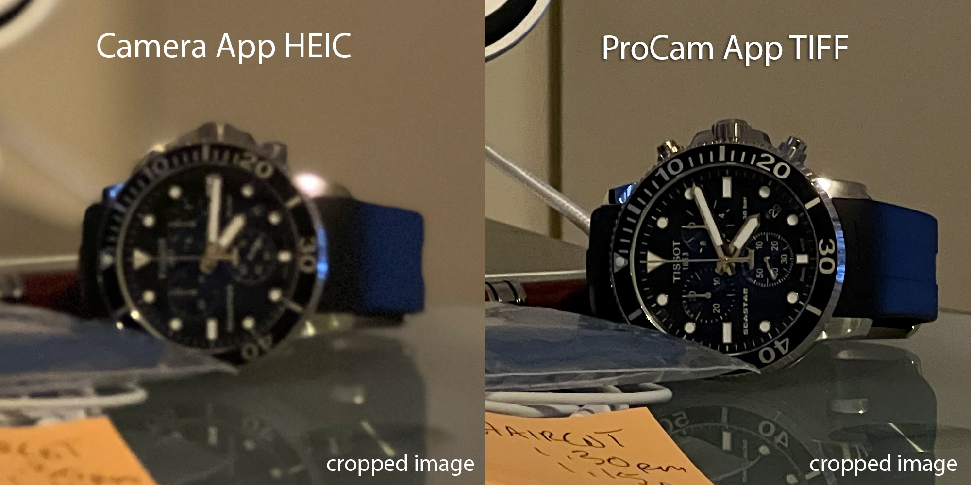 Last night I conducted a comparison from my desk. It wasn't particularly scientific but I think it applied well to the real world. Every single picture I took was from a seated position with both hands holding the phone very carefully. The AF reticule was allowed to rest and lock exposure and focus before I took each picture. The target zone was the face of this wristwatch. I was surprised to see that every single picture from the Camera App using the 3x Lens was smeared. Some were worse (far worse) than others. The same applied when JPEG was selected instead of Apple's preferred HEIC files. Here's an example of one of the cropped JPEG images...