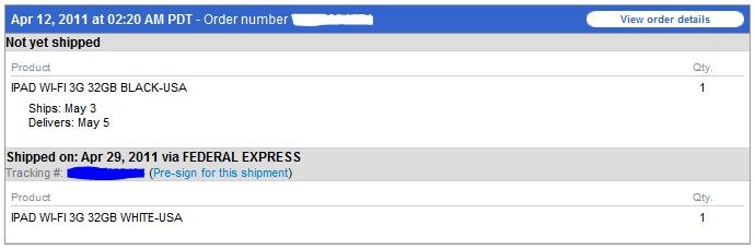 Ordered 16gb Wifi Verizon Black ipad2 on April 8th. Paid for 2 day delivery. Supposed to be delivered in Ohio today by 10:30 a.m. but it still hasn't left Memphis yet......so much for having it this weekend.