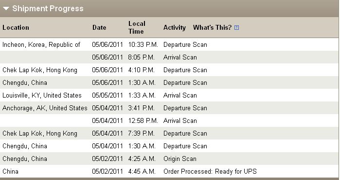 2011-05-04 14:10:00 Left FedEx Origin Location SHENZHEN,