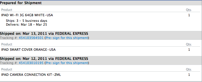 In regard to #2, I had an experience with that scenario two years ago. I ordered a custom built MBP and waited anxiously for its delivery. I was ecstatic to get my FedEx tracking number. I checked status like a possessed Apple disciple.