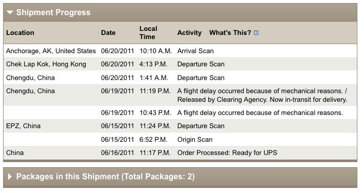 China 06/20/2011 7:39 P.M. Order Processed: Ready for UPS